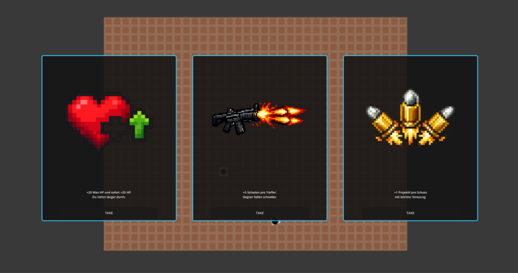 A secondary UI (i had so much pain with the shader material, making the background blurry) opens up and the player can choose a card and the upgrade.