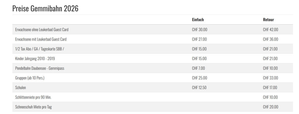 Zugfahrt, dann Gemmibahn von Leukerbad bis Gemmipass (21CHF)